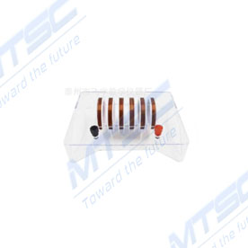 Bằng mica trong suốt, Trên có 5 cuộn đồng nói tiếp nhau. 2 jack bắp chuối đường kính 4mm màu đỏ đen