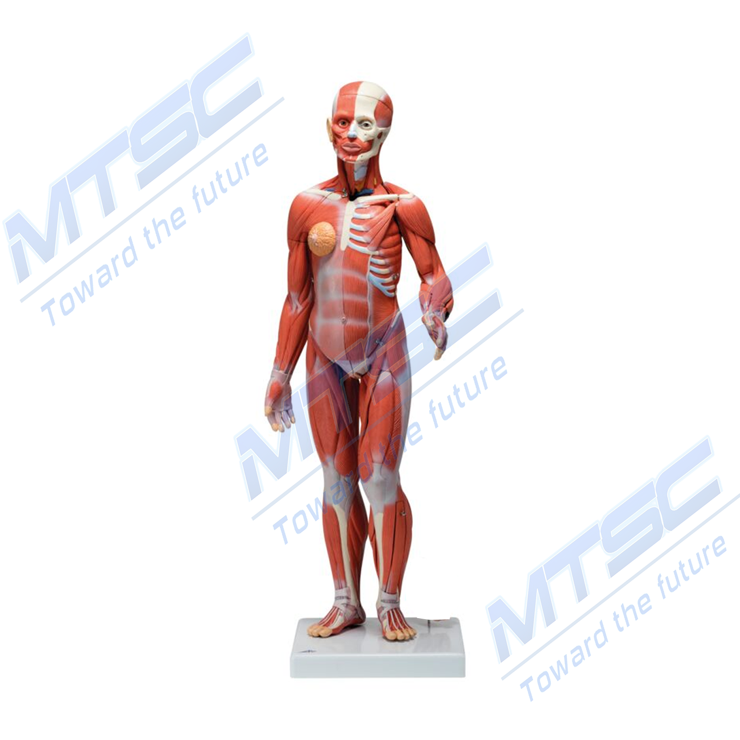 | – Bao gồm 27 phần thể hiện toàn bộ hệ cơ của cơ thể, cùng với các cơ quan nội tạng khác của cơ thể người trưởng thành: Đầu và cổ, thân, xương chi trên và dưới, dây chằng, cơ quan ngực và bụng, mạch máu và cấu trúc não… – Có thể tháo rời từng bộ phận để bộc lộ các lớp từ nông đến sâu trong cơ thể người, tìm hiểu cấu tạo giải phẫu thực tế của các cơ cũng như các cơ quan nội tạng trong cơ thể. Giúp cho quá trình học tập đạt hiệu quả cao nhất. – Chi tiết 27 phần: 1. Cơ thể 2. Vòm sọ cắt có thể tháo rời 3. Não trái 4. Não phải 5. Lồng ngực và thành bụng 6-7. Tim bổ dọc: 2 phần 8. Gan 9. Dạ dày 10. Ruột 11-12. Phổi: Nửa phổi trái, nửa phổi phải 13. Cánh tay phải 14-18. Cánh tay trái bao gồm: Cánh tay; Cơ delta; Cơ nhị đầu cánh tay; Cơ duỗi cổ tay; Cơ ngửa 19-22. Đùi trước bao gồm:; Cơ Satorius; Cơ đùi trực tràng ;Cơ chày trước ;Cơ căng mạc đùi 23-27. Đùi sau bao gồm: Cơ bụng chân (2 phần); Cơ bán gân ;Cơ nhị đầu đùi; Cơ mông – Chất liệu: Nhựa PVC thân thiện với môi trường, chống bể vỡ. Chân đế và trục giá treo làm bằng thép không gỉ vững chắc, bền bỉ với thời gian, thuận tiện cho việc tháo lắp, di chuyển giữa các lớp học khi giáo viên tổ chức dạy thực hành. – Kích thước thực tế: Cao 80cm. |